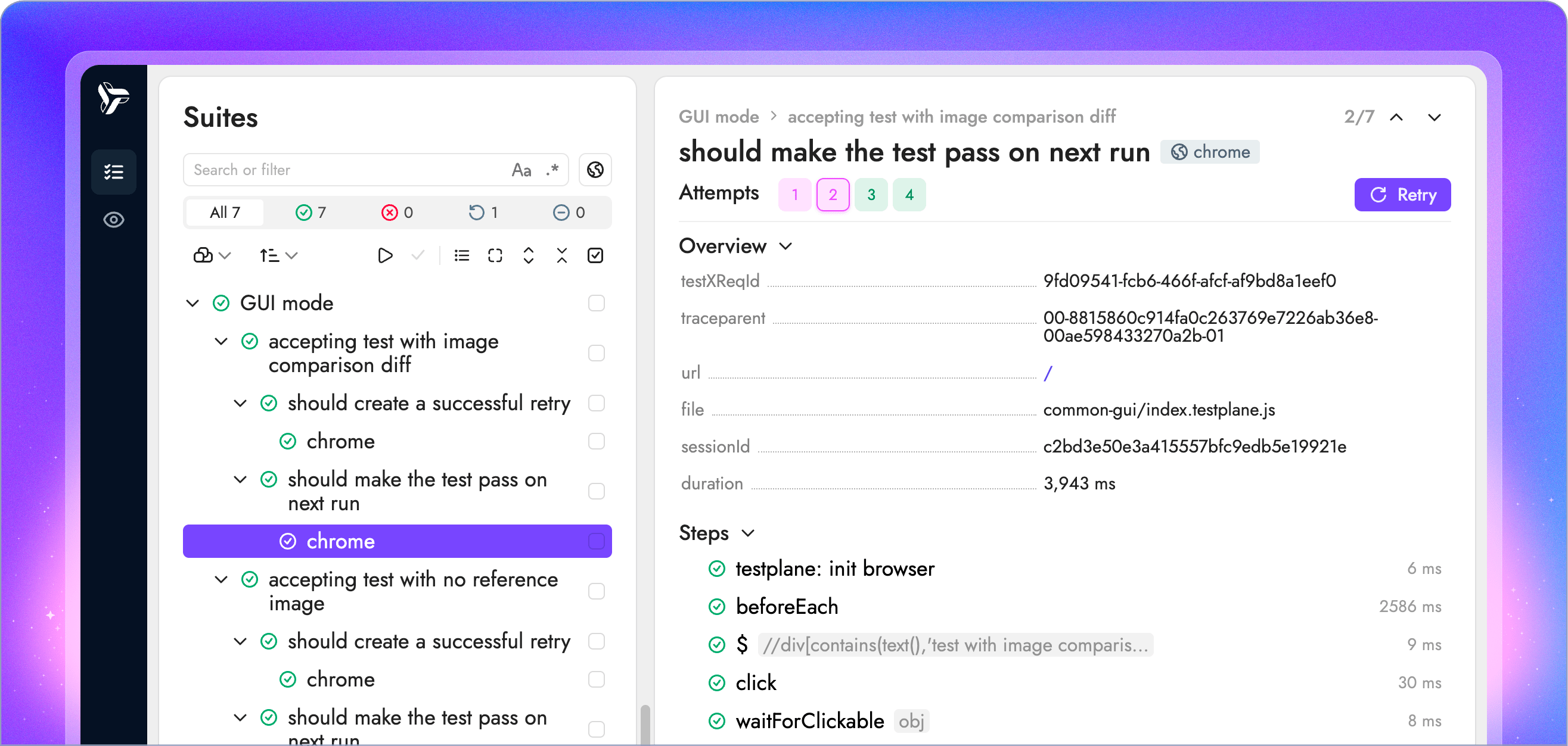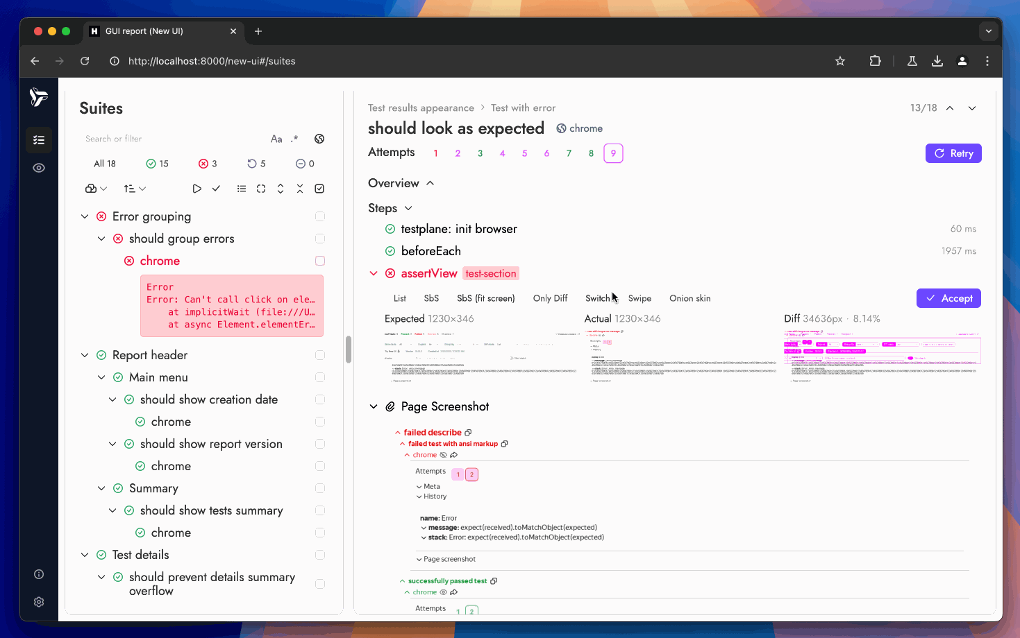 • Больше, чем просто отчет: это не статический отчет — вы можете запускать свои тесты, обновлять эталонные изображения, анализировать прогоны тестов и многое другое.