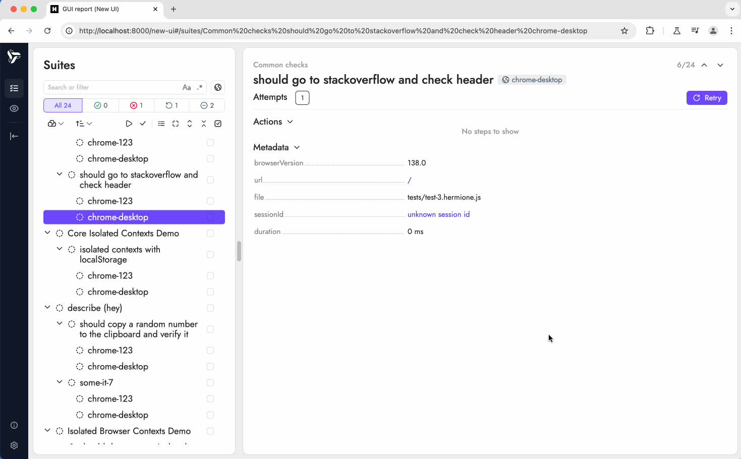 Поиск тестов теперь более интеллектуальный и понимает запросы даже с опечатками или в другой раскладке. Появились опции поиска как в IDE: regex и case-insensitive.